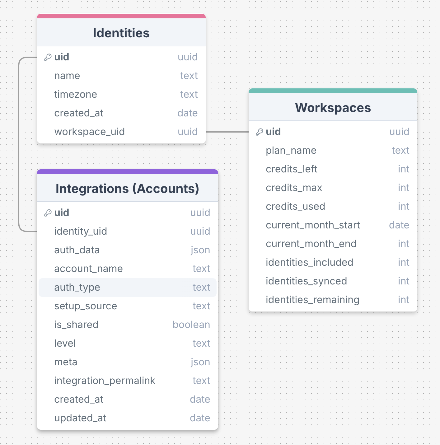 An Integration represents a connection to an external service, such as LinkedIn or HubSpot, that you can access through our APIs.- An Integration belongs to a single Identity.